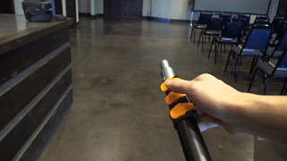 - Start by unclasping the top orange clasp, then pull out the first aluminum section.