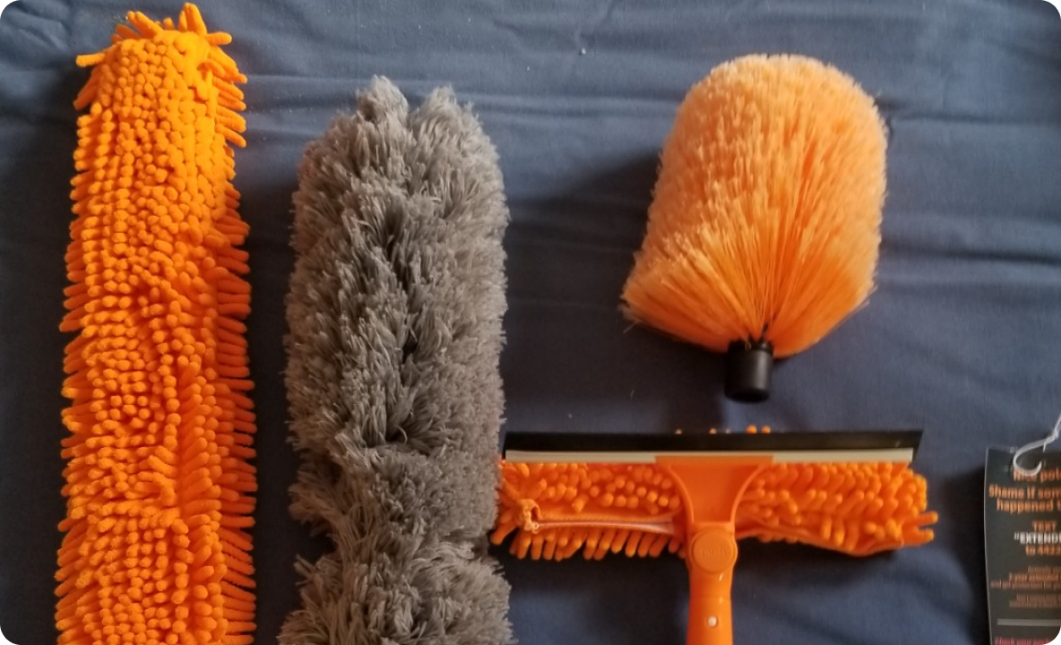 24 Foot High Reach Duster Kit with 5-18 ft Extension Pole // 5-Piece ALL-INCLUSIVE extendable duster kit for high ceilings will make all your hard-to-reach tasks super easy. If your home has high ceilings, floor-to-ceiling windows, or other difficult-to-clean areas, our Extend-A-Reach cleaning kit is the ultimate answer for a tidy home environment.
