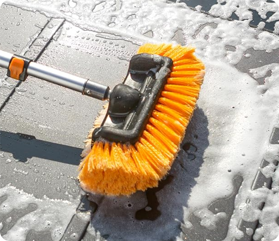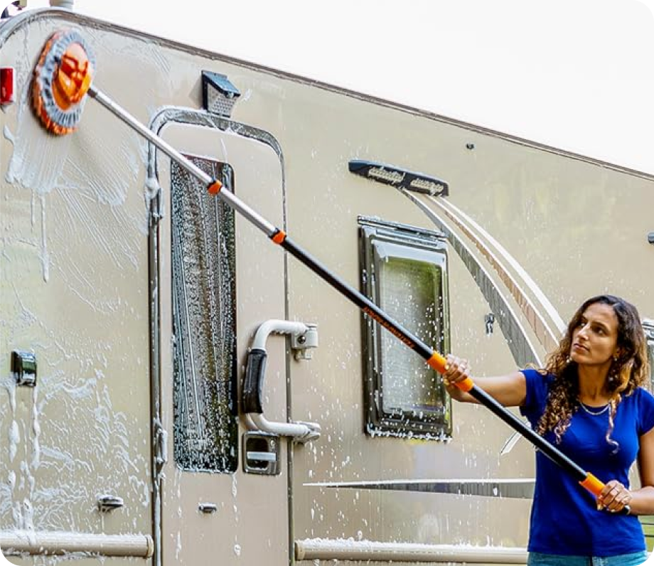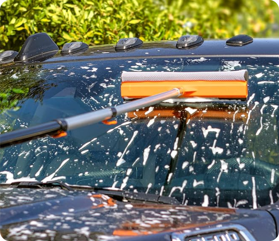 This multi-use high reach bristle set and window washing kit can also easily reach and clean all kinds of weird angles.